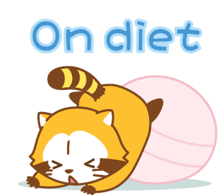 A cute Rascal tanuki character wiggles on a pink exercise ball, looking surprised.