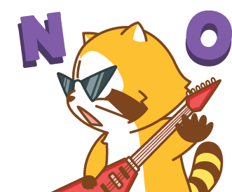Rascal the raccoon character rocks out, playing a red electric guitar while wearing cool sunglasses.