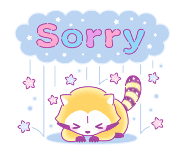 Cute yellow raccoon-like character, Rascal, expresses sorrow under a star-filled cloud with the word 'Sorry'.