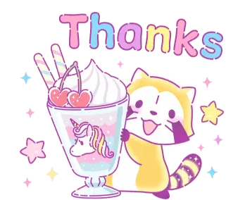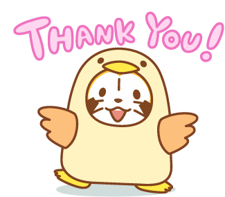 Cute Rascal character in a bird costume expresses gratitude with a cheerful 'Thank You!' message.