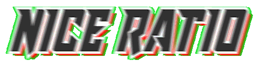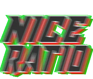 An animated sticker displaying the phrase "Nice Ratio" in a stylized, glitching 3D text with green and pink effects.