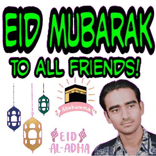 Raufbaheruni Rauf shares Eid Mubarak and Eid al-Adha greetings with friends, featuring lanterns and the Kaaba.