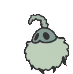 A fluffy, light blue creature from Hollow Knight, known as a Flukefey, animated in a fun, rhythmic 'rave' dance.