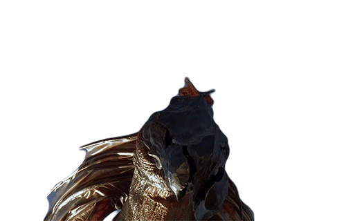 A terrifying Graboid monster from Tremors opens its mouth wide, revealing a red interior and sharp structures, letting out a fierce "Rawr."