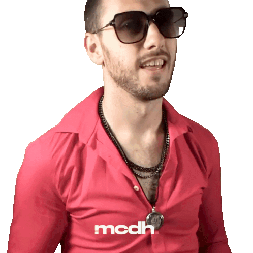 A man in sunglasses and a red shirt holds up a 50 Euro bill, with 'mcdh' text visible. Expresses a reaction.