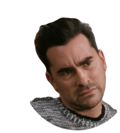 David Rose's iconic 'Really?' expression from Schitt's Creek, showing skepticism and mild annoyance, portrayed by Dan Levy.
