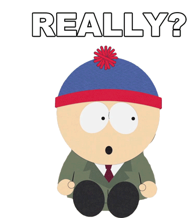 Stan Marsh from South Park looking shocked with the caption 'REALLY?'. Perfect for expressing disbelief.
