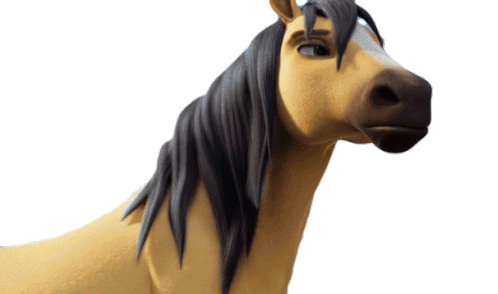 The animated horse Spirit from Spirit Untamed rears up on its hind legs, showcasing its wild and free spirit.