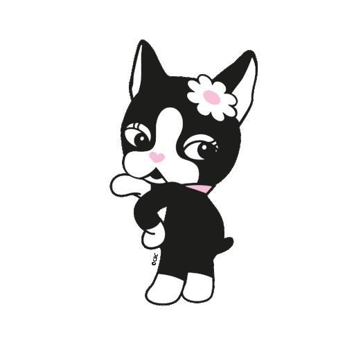 Rebecca Bonbon, the cute French Bulldog, winks and blows a kiss with pink hearts, wearing a flower and collar.