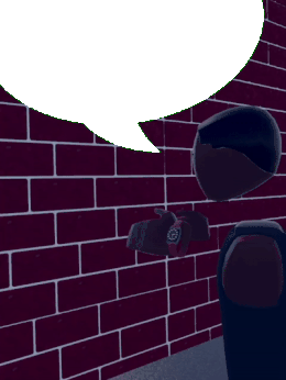 A Rec Room character talks to a brick wall, creating a classic meme scenario with a speech bubble.
