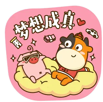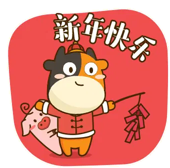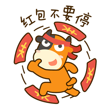 An animated Tuniu cow character running with a red pocket, celebrating Chinese New Year and bringing good fortune.