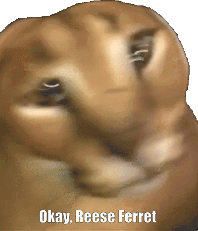 An animated sticker featuring Reese Ferret, a cute cat character, with text 'okay reese ferret' below it.