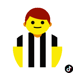 Animated emoji sticker of a football referee in a black and white striped uniform, ideal for TikTok and soccer fans.