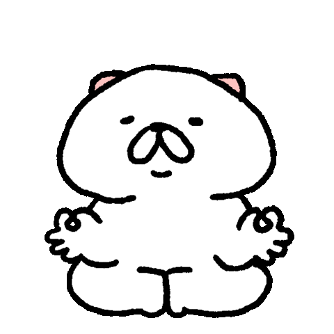 A cute white character sits peacefully in a meditation pose, radiating calm and relaxation.