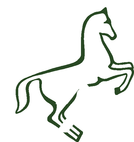 A dynamic green horse sticker for Reitsport Voss, perfect for riding and equestrian fashion enthusiasts.