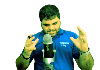 a man wearing a blue shirt that says highnetics