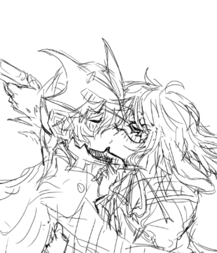 a black and white drawing of a man and a woman kissing