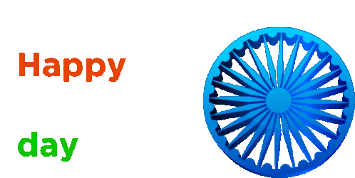 An animated greeting for Republic Day in India, featuring the Ashoka Chakra and the text 'Happy Republic Day'.