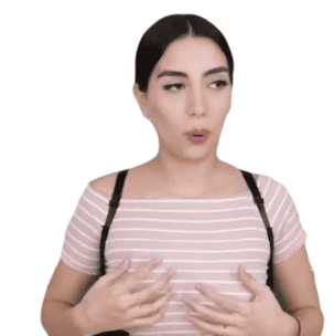 Claudipia gestures with her hands over her chest, speaking calmly, conveying a sense of relaxation and tranquility.