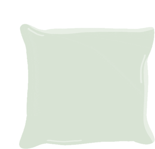 Animated sticker of a soft green pillow with the word 'REST' written twice, encouraging relaxation.