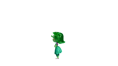 Disgust from Inside Out, a green-skinned character, stands looking restless, bored, and annoyed, shifting her weight.