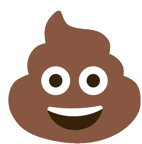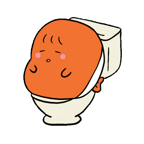 A round orange cartoon character with pink cheeks sits on a toilet, appearing to strain or feel unwell.