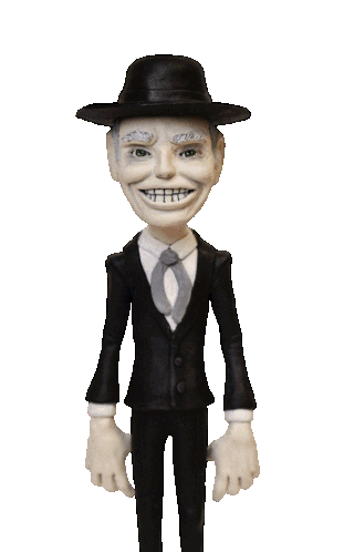Reverend Kane's face transforms from a creepy smile to a skull with '666' on its forehead, a spooky poltergeist moment.