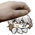 Animated sticker featuring a hand gently placing the character Medicinepocket from Reverse1999 onto a person's head.