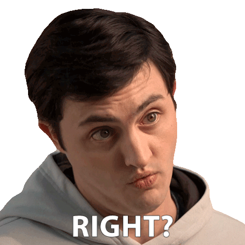 Demetri Alexopoulos from Cobra Kai, played by Gianni DeCenzo, asks 'Right?' with a questioning expression.