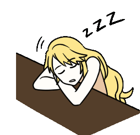 Rika Kim from Mystic Messenger, looking sleepy and resting her head on a table, possibly waking up.