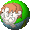 a pixel art illustration of a green globe with a person 's face on it .