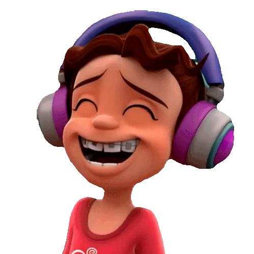 Dolores from Mini Beat Power Rockers laughs joyfully, wearing headphones and braces, eyes closed in pure delight.