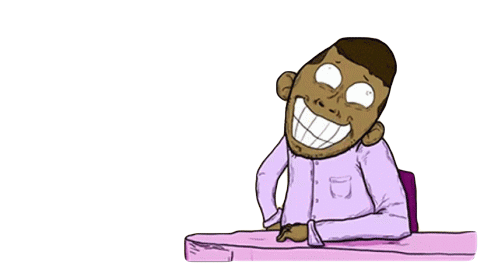A cartoon man with an exaggerated, wide smile and big eyes laughs heartily, his head bobbing slightly, perfect for expressing humor and joy.
