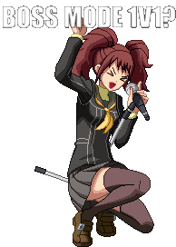 Rise Kujikawa from Persona 4 challenges you to 'Boss Mode 1v1?' in this animated pixel art sticker.