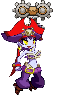 Risky Boots, the pirate queen from Shantae, in her iconic pixel art style, wearing a red hat and carrying her gear.