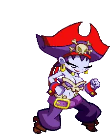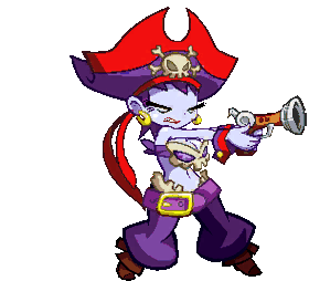 Risky Boots, the pirate queen from Shantae, strikes a dynamic pose, holding her flintlock pistol.