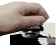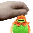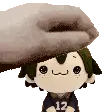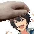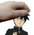 A pixel art Ritsu Kageyama from Mob Psycho 100 has his head gently squeezed by a hand in this animated sticker.
