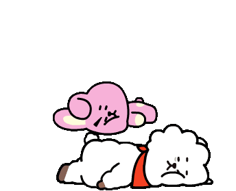 a cartoon of a sheep and a pink rabbit standing next to each other .