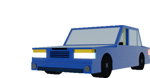 a blue car with black wheels and a yellow headlight