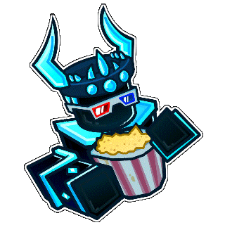 a pixel art drawing of a robot with horns eating popcorn .