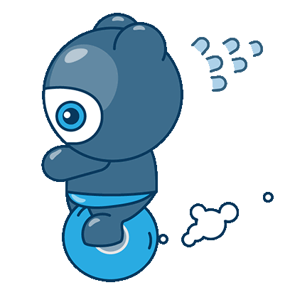 A cute blue robot character on a unicycle speeds forward, leaving a trail of smoke and lines indicating fast movement.