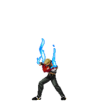 Rock Howard from KOF and Fatal Fury unleashes a powerful blue energy burst attack.
