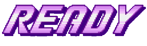pixel art of the word ready in purple letters