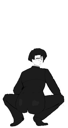 Animated sticker of Roland from Library of Ruina in a bouncing Omni-Man pose, featuring his Black Silence appearance.