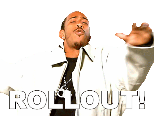 Ludacris energetically shouts 'ROLLOUT!' with arms outstretched, perfect for announcing a big reveal or departure.