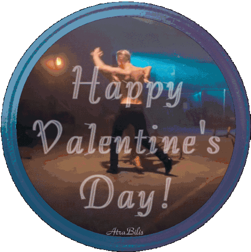 A romantic sticker featuring a couple dancing gracefully, wishing 'Happy Valentine's Day' in a stylish circular frame.