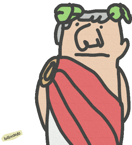 Animated cartoon sticker of Julius Caesar, the Roman emperor, turning his head with a thoughtful expression.