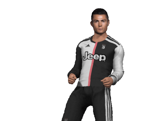 Cristiano Ronaldo in a Juventus jersey performs a celebratory dance, moving his hips and arms.