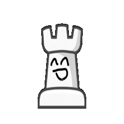 A cheerful animated white chess rook, known as Globalrook, wiggles with a happy, winking face.