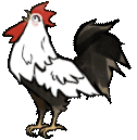 A charming cartoon rooster with a red comb and black tail crows, animated on a transparent background.